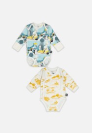 Hier einige Fakten zu den Materialien der Pieces: Bio-Baumwolle und Tencel® sind beides Stoffe natürlichen Ursprungs, chemisch unbedenklich und extra weich und bequem für das Baby. Die weiche, warme Merinowolle ist mulesingfrei. Umklappbare Ärmelenden verhindern, dass sich das Baby versehentlich kratzt und Wickelbodys erleichtern das An- und Ausziehen von Neugeborenen erheblich. Die Mumin-Prints und der Wendeoverall bringen einen Hauch von Freude in den Alltag. Und schließlich sorgt die hohe Qualität der Stoffe, einschließlich der Wollartikel, dafür, dass sie mehrfach gewaschen werden können, ohne ihre Form zu verlieren oder auszubleichen - ein muss für Babykleidung.