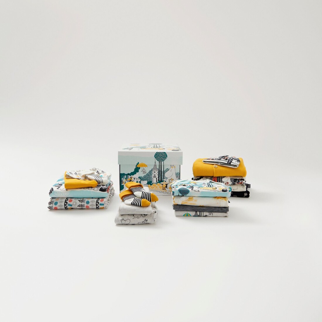 Das zentrale Druckthema in den geschlechtsneutralen Designs und Farben ist Mumin, eine Familie von Trollen, die von der beliebten Autorin und Illustratorin Tove Jansson geschaffen wurden. Die Mumins sind eine sorglose, akzeptierende und abenteuerlustige Familie, die im Mumintal lebt und mit ihren Freunden viele Abenteuer erlebt. Erfahren Sie mehr über die Mumins unter https://www.moomin.com/