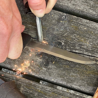 Im Griff ist ein Swedish FireSteel integriert. Dieser wetterfeste Zündstab generiert bis zu 3000 Schläge lang 3000 °C heiße Funken und entfacht sogar unter schlechtesten Bedingungen ein Feuer. Ist der Zündstab verbraucht, kann er ersetzt werden und erzeugt wieder zuverlässig starke Funken.