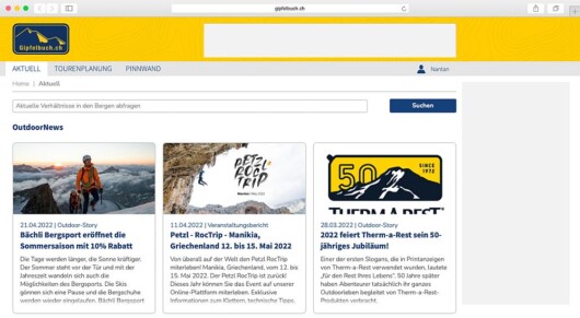 - Spannende Informationen rund um die Themen Outdoor und Bergsport werden neu kompakt auf der Startseite dargestellt.