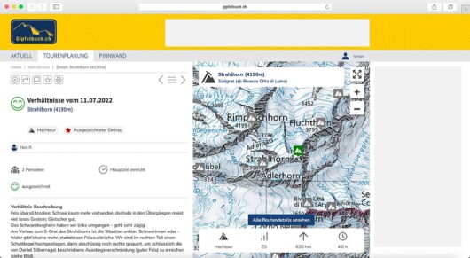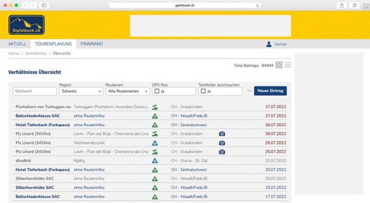 Die neuen Formulare zur Eingabe von Verhältnissen und Routen können jetzt intuitiver und schneller ausgefüllt werden. Und Verhältnismeldungen sind neu auch unkompliziert per Smartphone von speziellen Standorten wie zum Beispiel Berghütten möglich - ohne technische Hürden und sehr pragmatisch dem physischen Papier-Gipfelbuch nachempfunden.