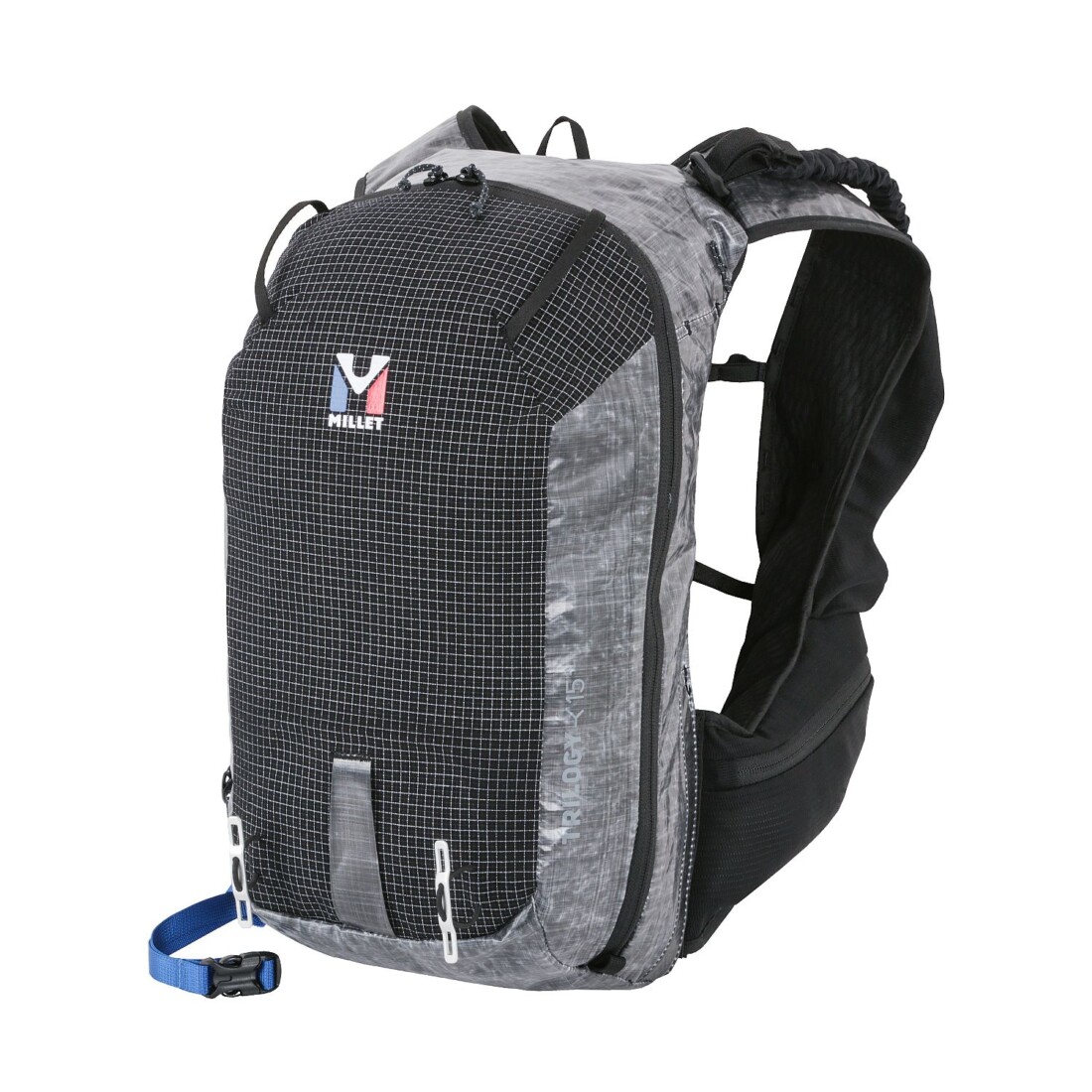 Um diesen innovativen Millet-Trilogy-Rucksack zu entwickeln, der mehr Geschwindigkeit in hohen Lagen bieten sollte, wurden von unserem österreichischen Technikexperten Philipp Brugger mehr als sechs Prototypen harten Praxistests den Bergen unterzogen. Diese Kreuzung aus Bergsteiger-, Trailläufer- und Kletterrucksack kombiniert hochgradig robustes Dyneema®-Gewebe mit einem extrem dehnbaren Dyneema®-Stretch-Einsatz an der Frontseite. Das optimiert die Gewichtsverteilung und Stabilität. Der Rucksack verfügt über Eisaxtschlaufen und eine diagonale Skihalterung für vertikale Passagen und ein Tragesystem, das den gesamten Rucksack eng am Körper hält und dank cleverer Zugführung mit einem Handgriff justiert werden kann. Auf den Schultergurten dieses bahnbrechenden Rucksacks sitzen zwei Netztaschen, in die je eine Halbliterflasche passt, sowie zwei Reißverschlusstaschen.