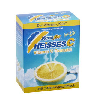 Das Heisse C von Xenofit liefert pro Portion 225 mg wertvolles Vitamin C. Das Getränk überzeugt durch den besonders fruchtigen Zitronengeschmack und eine gute Verträglichkeit. Der Powerlieferant ist als Vorratsdose für 30 Portionen oder in der Packung mit zehn Einzelbeuteln für je 200 ml Fertiggetränk erhältlich. Das Heisse C plus von Xenofit liefert genauso viele Powervitamine für den Winter und überzeugt mit wertvollem Holunderextrakt und Honiggeschmack. Beide Vitamin C-Produkte sind für Vegetarier und Veganer geeignet, ohne Fruktose, Laktose, Gluten und künstliche Farbstoffe.