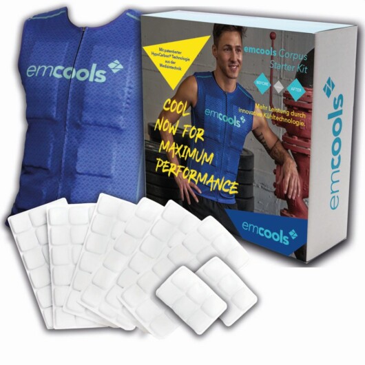 Die Pads von emcools wurden mit der patentrechtlich geschützten HypoCarbon® Technologie entwickelt und kühlen besser als herkömmliche Kühlmethoden: Die geringe Kondenswasserbildung sorgt für eine effiziente Wärmeleitung und entzieht so dem Körper optimal die Wärme. Die Pads liefern eine konstante Kühltemperatur, die bei etwa 7 bis 9 °C liegt und daher das Gewebe schont und Erfrierungen vermeidet. Die Kühlung dringt in tiefere Gewebeschichten, als es bei Eis und anderen Methoden der Fall ist. Für einen hohen Tragekomfort im Sport hat emcools Wearables für Unter- und Oberschenkel, für das Handgelenk und für den Kopf entwickelt. Eine absolute Neuheit am Markt ist die emcools Corpus Kühlweste. Sie sorgt vor oder während des Sports für einen thermischen Puffer und wird erstmals offiziell auf der ISPO Munich vorgestellt. Die Wearables sind speziell darauf abgestimmt, die Kühlleistung der emcools Active.Pads bestmöglich zu gewährleisten. „Die Cooling Pads werden einfach in die Wearables geschoben und an der gewünschten Körperstelle fixiert. Das sorgt für die ideale Kühlung“, erläutert Mikulsky die Weiterentwicklung der Technologie für den Sport.
