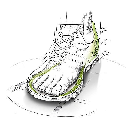 „Im Vergleich zu einem Trekkingleisten bietet der Comfort fit®-Leisten im Vorfußbereich eine breitere Auftrittsfläche und mehr Platz im Ballenbereich. Damit haben die Zehen mehr Platz. Die Großzehe wird gerade gestellt und es entsteht kein Druck im Ballenbereich.“