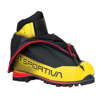 Der La Sportiva G5 Evo ist der innovativste wasserabweisende Schuh für extremes Bergsteigen, Eisklettern und kalte, alpine Bedingungen. Er ist leicht und schmal, um mit und ohne Steigeisen präzises, sicheres Antreten zu ermöglichen. Man kann ihn einfach an- und ausziehen und die Schnürung leicht anpassen. Und vor allem: Er hält die Füße warm.