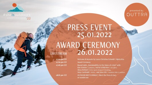 Am Mittwoch, den 26. Januar, 19:00 Uhr MEZ, werden die Gewinner des WOMEN’S GEAR AWARD #she is outdoors Winter 2022 im Rahmen eines digitalen Live Stream Events bekannt geben.