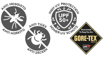 Schützend - Umweltschonende Insektenabwehr dank Anti-Mosquito-Sweatband. Ohne Gifte wie Permethrin und DEET ist es die perfekte Alternative für den kritischen Kunden. Von der WHO als unbedenklich für Kinder und Schwangere eingestuft, hilft Anti Mosquito gegen Zecken und Stechmücken. Gore-Tex schützt zuverlässig vor Wind und Wasser. Der integrierte UV-Schutz mit UPF 50+ wehrt schädliche Sonnenstrahlung ab.