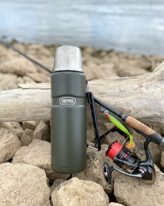 Catch me if you can: Die Stainless King Isolierflasche von Thermos ist der beste Fang für den Tag am Wasser. Katastrophenfrei dicht, frei von BPA und aus schlag- und bruchsicherem Edelstahl gefertigt. Der Isolierflaschen-Klassiker mit 1,2 Liter Inhalt und praktischem Tragegriff braucht keine Schonzeit und ist bis zu 24 Stunden mit kalten Getränken oder mit heißen Drinks einsatzbereit. Die herrliche Stille beim Angeln kann mit Thermos über Stunden genossen werden – wer jetzt noch nicht angebissen hat, hat noch kein Thermos-Original in der Hand gehabt!