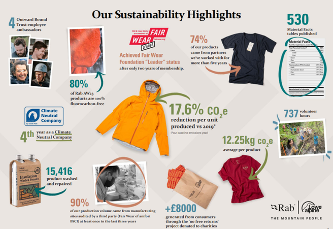 - erstmalig Zusammenarbeit mit Rab Athleten, um Auswirkungen zu reduzieren, Wissen weiterzugeben und zu einer Verhaltensänderung anzuregen.