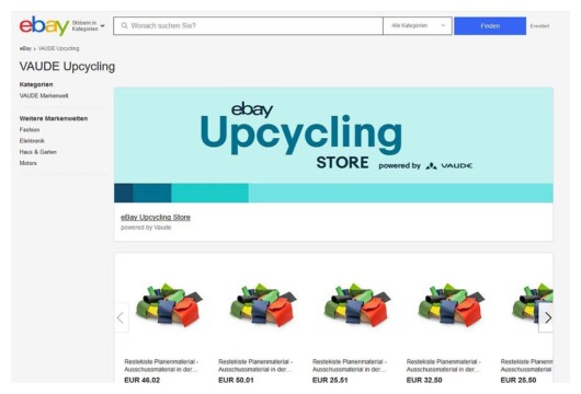 Mit dem neuen Upcycling Store hat VAUDE einen weiteren Meilenstein erreicht, nachdem sich das Unternehmen bereits seit einigen Jahren bewusst für dieses Thema engagiert. Die ersten Upcycling-Produkte entstanden im Rahmen von Näh-Workshops für Geflüchtete. 2018 eröffnete VAUDE eine eigene Upcycling-Werkstatt, in der seither Shopper-Taschen und andere Produkte aus Restmaterialien hergestellt werden, die sich großer Beliebtheit erfreuen. Parallel dazu gründete VAUDE eine Upcycling-Community, über die Materialien und Ideen für Upcycling-Produkte ausgetauscht werden. Aus diesem Projekt hat sich der neue Upcycling Store entwickelt, der nun von der hohen Kundenreichweite von eBay profitiert: Allein in Deutschland hat der Online-Marktplatz mehr als 18 Millionen aktive Käufer.