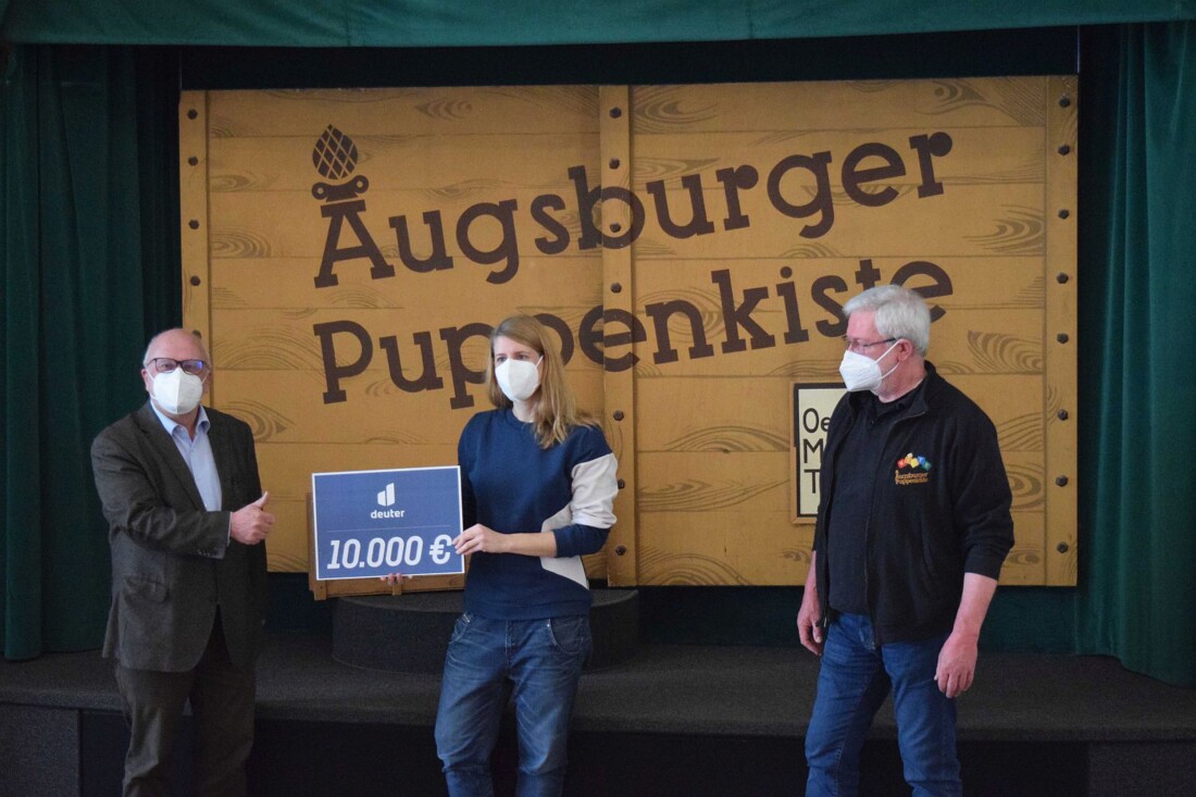 Die Senkung der Mehrwertsteuer im Zeitraum 01.07. bis 31.12.2020 von 19 % auf 16 % hatte positive Auswirkungen auf den Endpreis von Produkten. deuter bot seinen Kunden in dieser Zeit den Kauf seiner hochwertigen Produkte zur reduzierten Mehrwertsteuer an und den Differenzbetrag zur ursprünglichen Mehrwertsteuer der "Augsburger Puppenkiste" zu spenden. Dadurch kam eine Spende in Höhe von insgesamt 4.800 € zusammen, die der Gersthofener Rucksackhersteller auf eine Gesamtsumme von 10.000 € erhöhte. Anfang März erfolgte die Scheck-Übergabe von deuter an Christoph Mayer, Vorsitzender des Fördervereins "Freunde des Augsburger Puppenspiels e.V." und an Klaus Marschall, Theaterleiter. Die „Augsburger Puppenkiste“ ist als privates Marionettentheater überregional bekannt und eine der herausragenden kulturellen Einrichtungen, die wirtschaftlich unter der Corona-Pandemie besonders leiden. Wir freuen uns, die "Augsburger Puppenkiste" mit dieser zweckgebundenen Spende finanziell unterstützen zu können und bedanken uns sehr herzlich bei unseren Kunden, die diese Spende ermöglicht haben", so Christina Völlinger, Marketingleiterin bei deuter.