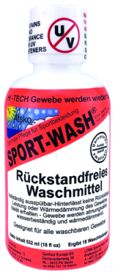 Mit SPORT-WASH® lassen sich alle waschbaren Gewebe gründlich und rückstandsfrei reinigen. Dabei beseitigt das Waschmittel auf natürlicher Kokosbasis selbst die hartnäckigsten Flecken auf sanfte Weise. Anders als andere Reiniger verwendet Sport-Wash keine Bleichmittel oder Duftstoffe und ist deshalb besonders mild und auch für empfindliche Haut geeignet. Sport-Wash wäscht Baumwolle und Wolle ebenso wie Funktionstextilien und Membranen. SPORT-WASH® MOUNTAIN eignet sich speziell für Funktionskleidung mit Daunenfüllung.