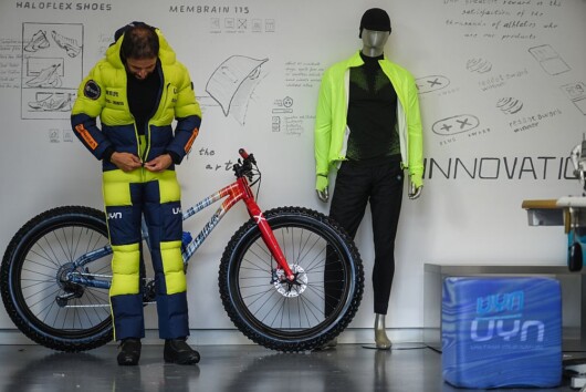 Omars Projekt stellte die UYN-Ingenieure vor die Herausforderung, eine noch nie dagewesene Art von Kleidung zu entwickeln, die in der Lage ist, die Körperwärme bei außergewöhnlich niedrigen Temperaturen aufrechtzuerhalten und dem Sportler gleichzeitig Bewegungsfreiheit auf dem Fahrrad zu ermöglichen. Ausgangspunkt war der Expeditionsanzug, der von Bergsteigern verwendet wird, wenn sie auf eine Höhe von 8000 Metern steigen. Um ein Maximum an Wärmeleistung zu erzielen, sind Jacke und Hose mit Airnest gepolstert, einem umweltfreundlichen Hochleistungsmaterial, das aus dem Recycling von Textilabfällen gewonnen wird und sich durch eine Mikrokugelstruktur auszeichnet, die die Luft einschließt und eine starke Isolierschicht bildet. Im Gegensatz zu Bergsteigern muss Omar jedoch andere Bewegungen machen, weshalb die Ingenieure von UYN neue Konstruktionslösungen entwickeln mussten.