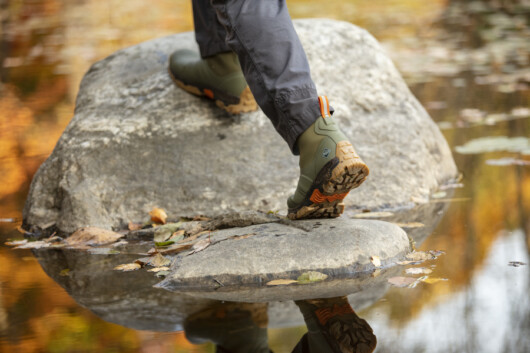 Der Hartgesottene: Der neue Apex Pro 16" macht jedes Outdoor-Abenteuer mit, von der ausdauernden Jagd, zu langen Arbeitstagen im Wald bis hin zu Hardcore-Abenteuern in Kälte und Eis. Ergonomisch platzierter Gummiteile sorgen dort für Schutz, wo er gebraucht wird, ohne dem absolut wasserdichten Stiefel von Muck Boots seine Leichtigkeit zu nehmen. Hochwertiges Fleeceinnenfutter hält die Füße warm und die neue Vibram Arctic Grip All Terrain Sohle sorgt auch auf losem Untergrund für besten Halt. Das erstklassige Fußbett mit Memory Foam und bioDEWIX™-Fußbetteinlage garantiert auch auf langen Etappen viel Komfort und ein perfektes Feuchtigkeitsmanagement. Der Apex Pro 16" wird in Schwarz/Grau und Bark mit Realtree EDGE™ Camo angeboten.