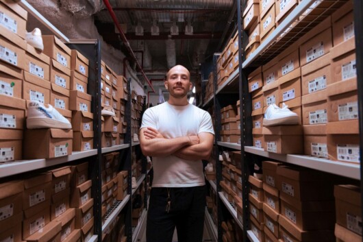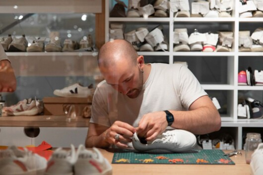VEJA bat einen seiner Schuhmacher, Walter, ein Modell aus VEJAs Lederabfällen zu entwerfen. für den Dover Street Market Ginza in Japan zu entwerfen. Zusammen mit dem VEJA-Designteam fertigte er 20 Paar Schuhe an, die exklusiv auf dem Dover Street Market Ginza präsentiert wurden. Dover Street Market Ginza am Samstag, den 28. Oktober verkauft werden. In den letzten drei Jahren hat VEJA weltweit vier Filialen eröffnet, jede mit einem eigenen Schuhmacher und einer mobilen Schuhmacherei in seinem Lager am Stadtrand von Paris. am Rande von Paris.