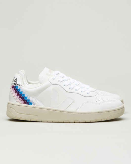 Dieses Projekt ist eine Hommage an die handwerklichen Fähigkeiten derjenigen, die im Hintergrund arbeiten und einen Beruf ausüben, der von unserer konsumorientierten Gesellschaft vergessen wurde. In einer Welt, in der die Ressourcen begrenzt sind, ist das Schuster-Handwerk unverzichtbar. Der exklusive Sneaker Ginza Dover Street Market ist von der Kunst des Patchworks inspiriert und kombiniert den V-90-Stil mit VEJAs Leder Abfällen zu exklusiven Kreationen. VEJA verwendet alte Lederreste und -abfälle neu, indem sie auf die Rückseite der Sneaker genäht werden. Die Farben variieren von einem Stück zum anderen und von einem Paar zum anderen, so dass jedes Modell ein einzigartiges, wiederverwertetes Exemplar ist. Der V-90, die neueste Kreation von VEJA, ist aus dem weichsten Leder gefertigt, das VEJA bisher verwendet hat - O.T.-Leder (Organic Traced Leather) von Farmen in Uruguay, das zu 100 % bio-zertifiziert ist. Diese Art von Leder wird einem mechanischen Verfahren unterzogen, das es fein und biegsam macht. Es wird in Brasilien gegerbt und benötigt weniger Farbstoffe als konventionelles Leder. Die Kollaboration ist unisex und kostet 250.- Euro.