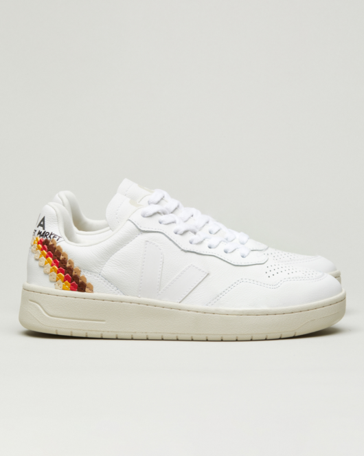 VEJA recycelt alte Lederabfälle, indem sie sie auf die Rückseite der Sneaker aufnäht. Die Farben variieren von Schuh zu Schuh und von Paar zu Paar, was jedes Modell zu einem einzigartigen Upcycling-Stück macht. Der V-90, die neueste Kreation von VEJA, ist aus dem weichsten Leder gefertigt, das VEJA bisher beschafft hat - O.T.-Leder (Organic Traced Leather) von Farmen in Uruguay, die zu 100 Prozent bio-zertifiziert sind. Dieses Leder wird mechanisch geklopft, wodurch es fein und geschmeidig wird. Es wird in Brasilien gegerbt und verwendet weniger Farbstoffe als konventionelles Leder.