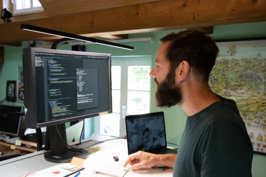 In einer über zweijährigen Entwicklungs- und Produktionsphase wurden in dem kleinen familiengeführten Verlag das Benutzeroberflächen-Design der App gestaltet, User-Interface-Skizzen kreiert, getestet und mehrfach wieder verworfen, die vorhandenen Kartendaten digital angereichert und verändert. Es entstand eine neue hauseigene Datenbank. „Im Prinzip haben wir unseren gesamten Datenbestand umgekrempelt, um diesen zentral pflegen und crossmedial sowohl für Printkarten als auch für die App effektiv nutzen zu können“, erläutert Max Schmidt, im Verlag u. a. für Datenmanagement verantwortlich.