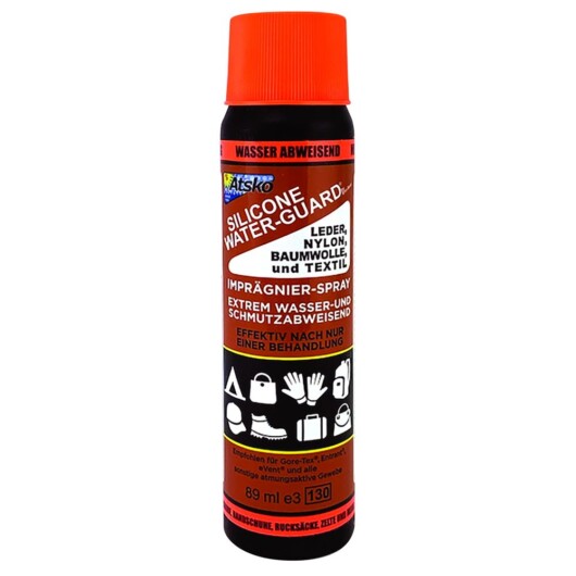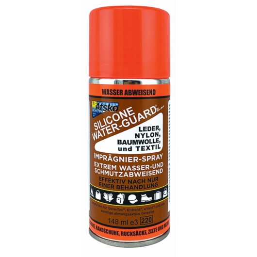 SILICONE WATER-GUARD® bietet das Maximum an Wasser- und Fleckenschutz nach nur einer Anwendung. Das Gewebe bleibt weich und atmungsaktiv, die Lebensdauer wird deutlich verlängert. Eine Schutzschicht aus 13% Silikon lässt Wasser und Schmutz vom Gewebe abperlen und hilft den Fasern, sich zu erneuern. Das Spray enthält vernetzte Polymere und ist FCKW-frei. für alle Funktionstextilien, Wild- und Glattleder. Empfohlen von den führenden Membran-Herstellern.