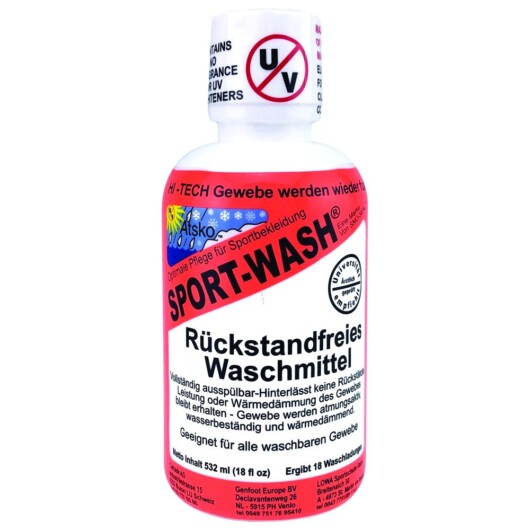 Mit SPORT-WASH® lassen sich alle waschbaren Gewebe gründlich und rückstandsfrei reinigen. Dabei beseitigt das Waschmittel auf natürlicher Kokosbasis selbst die hartnäckigsten Flecken auf sanfte Weise. Anders als andere Reiniger verwendet Sport-Wash keine Bleichmittel oder Duftstoffe und ist deshalb besonders mild und auch für empfindliche Haut geeignet. Sport-Wash wäscht Baumwolle und Wolle ebenso wie Funktionstextilien und Membranen. SPORT-WASH® MOUNTAIN eignet sich speziell für Funktionskleidung mit Daunenfüllung.