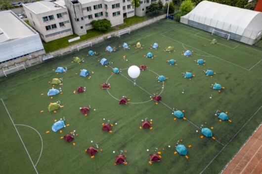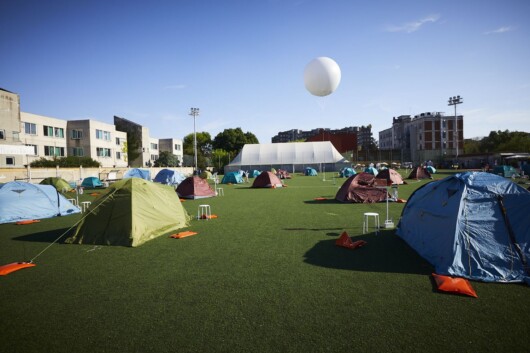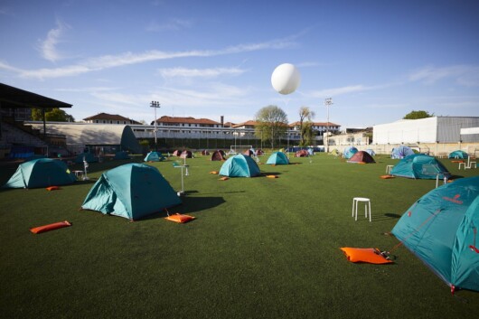 Bis zum 21. April übernachten die jungen Designer in Ferrino-Zelten, die auf dem Fußballplatz des Milanosport - Centro Sportivo "Enrico Cappelli Savorelli" aufgestellt sind.