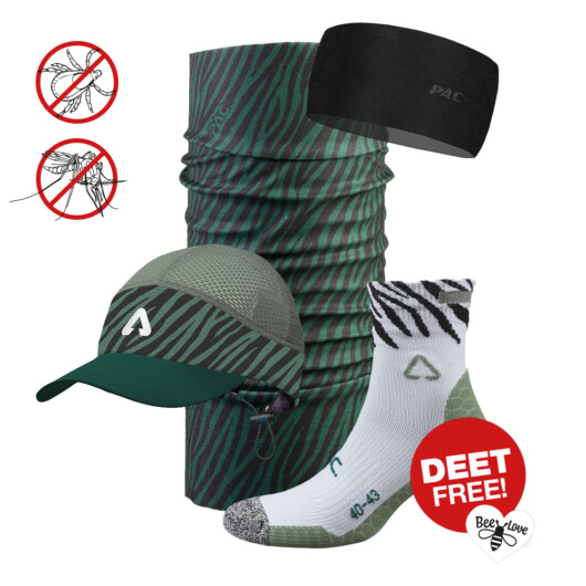 „Mit unserer innovativen Technologie geben wir Outdoor-Fans ein funktionales und zugleich stylisches Mittel an die Hand, um Zecken und Mücken abzuwehren– und das ganz ohne bedenkliche Wirkstoffe wie DEET oder Permethrin“, erklärt Lukas Weimann, CEO von P.A.C. Das Anti-Insect-Repellent ist biologisch abbaubar und behält seine Wirkung auch nach über 100 Waschgängen. Die Bandbreite an Produkten umfasst neben Funktionssocken und Multifunktionstüchern auch Headwear für Kinder und Erwachsene im Mix-und- Match-Design – perfekt für Wanderungen, Biken oder andere Outdoor-Abenteuer.