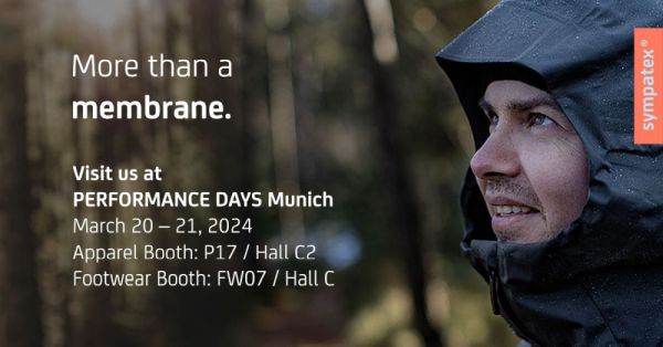 Vom 20. bis 21. März 2024 lädt der Membranhersteller Sympatex zu den Performance Days München ein (Apparel Stand: P17 / Halle C2 ; Footwear Stand: FW07 / Halle C1). Sympatex wird sein Engagement für Innovation, Nachhaltigkeit und strategische Zusammenarbeit innerhalb der Branche auf verschiedene Weise präsentieren.
