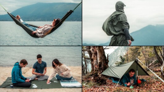 - TRAIL HOPPERS: Das Nomad’s Cape vereint vier Einsatzmöglichkeiten: Hängematte, Regenponcho, ein Dach für einen Unterstand und Picknickdecke.